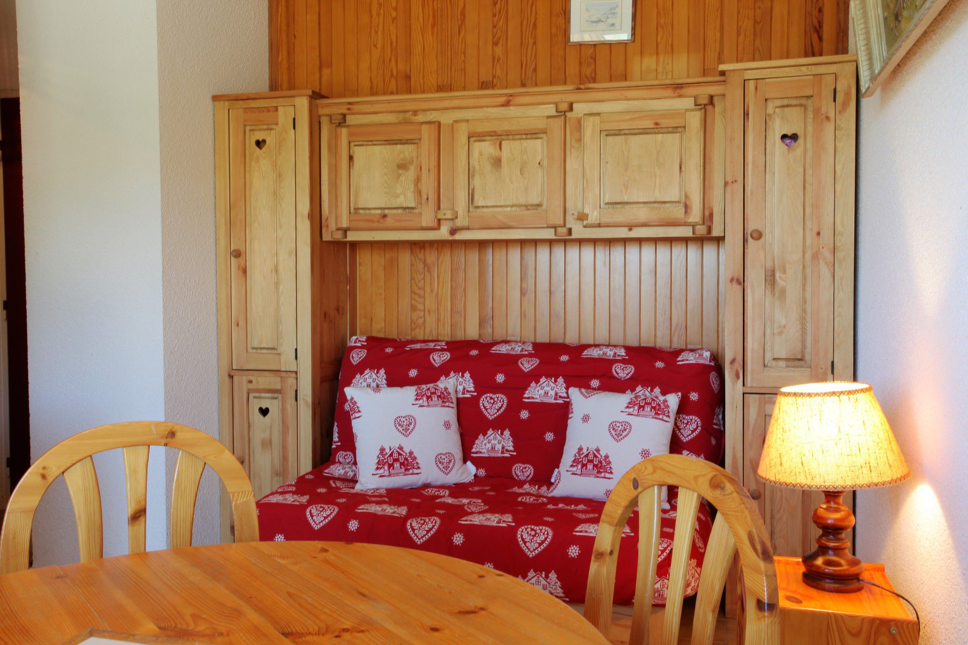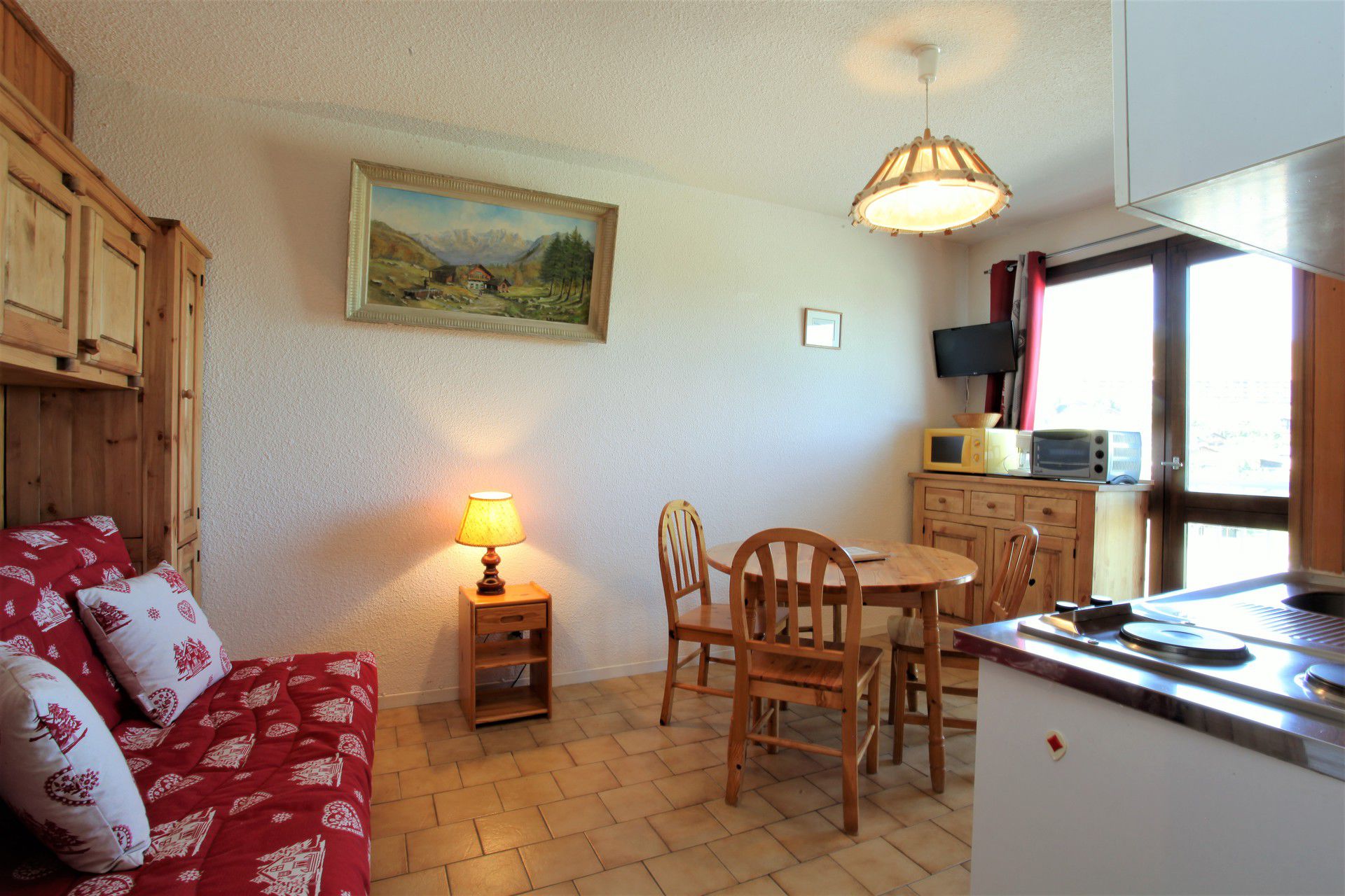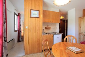 Studio situé au 3ème étage avec balcon orienté nord, vue sur le Grand Truc. Le logement comprend une kitchenette, un séjour avec coin nuit et une salle de bain séparée des WC.
