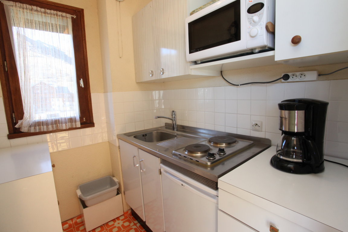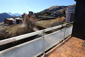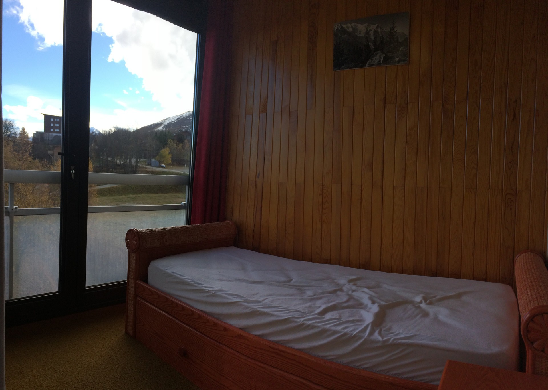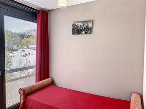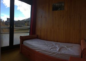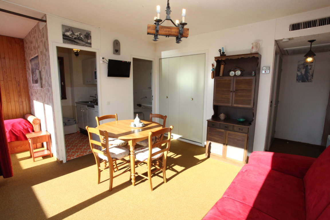 Studio sympathique au 5eme étage avec coin chambre, bien entretenu, superbe vue au Sud sur la chaîne de montagnes et les Aiguilles d'Arves. Balcon carrelé.