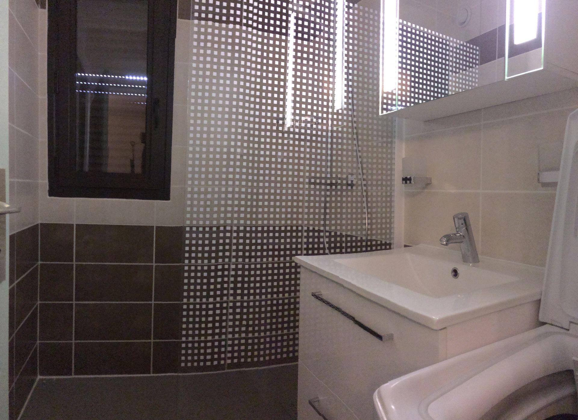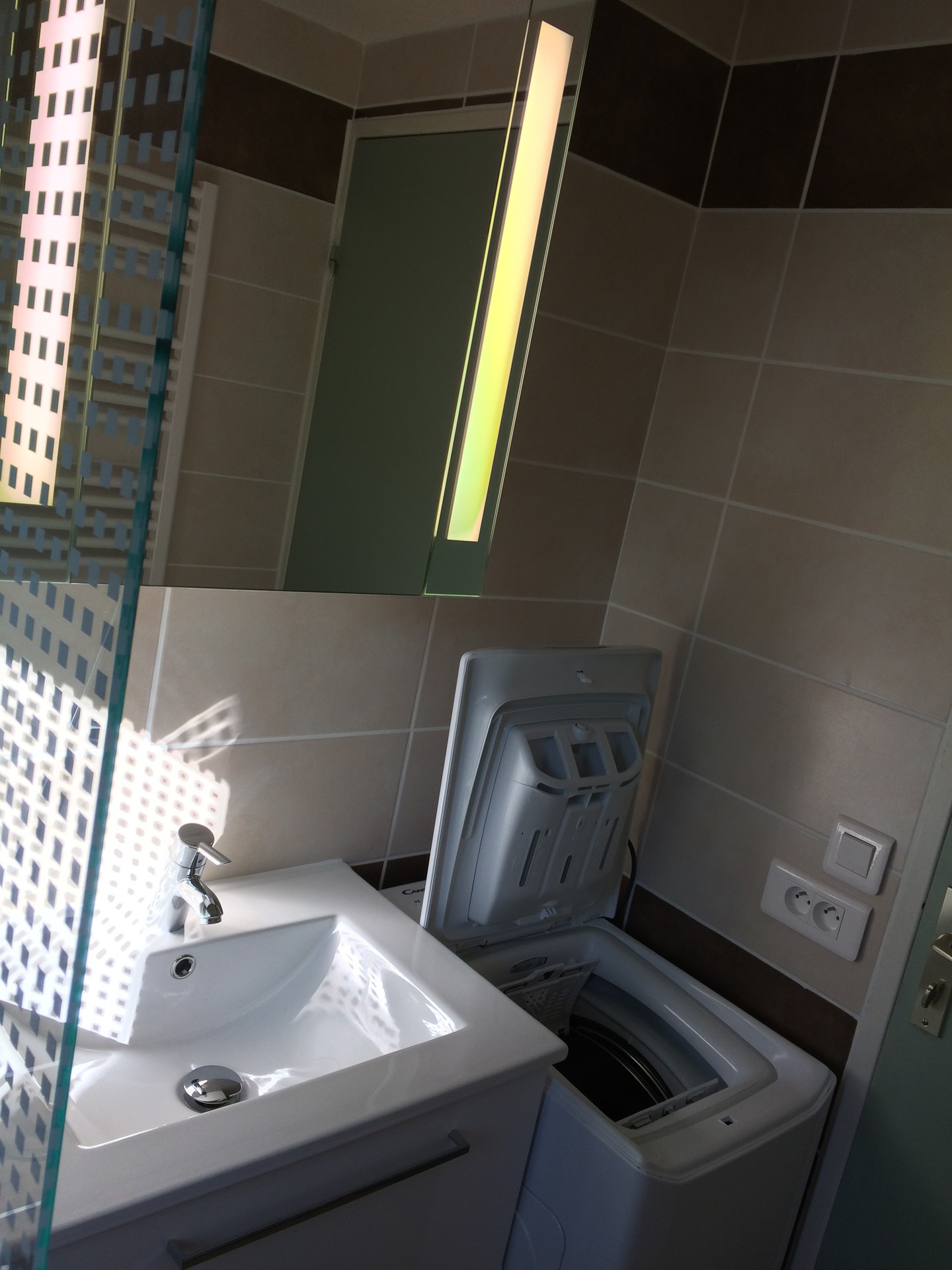 - SALLE DE BAINS carrelée : Douche à l'Italienne- meuble vasque- Machine à laver