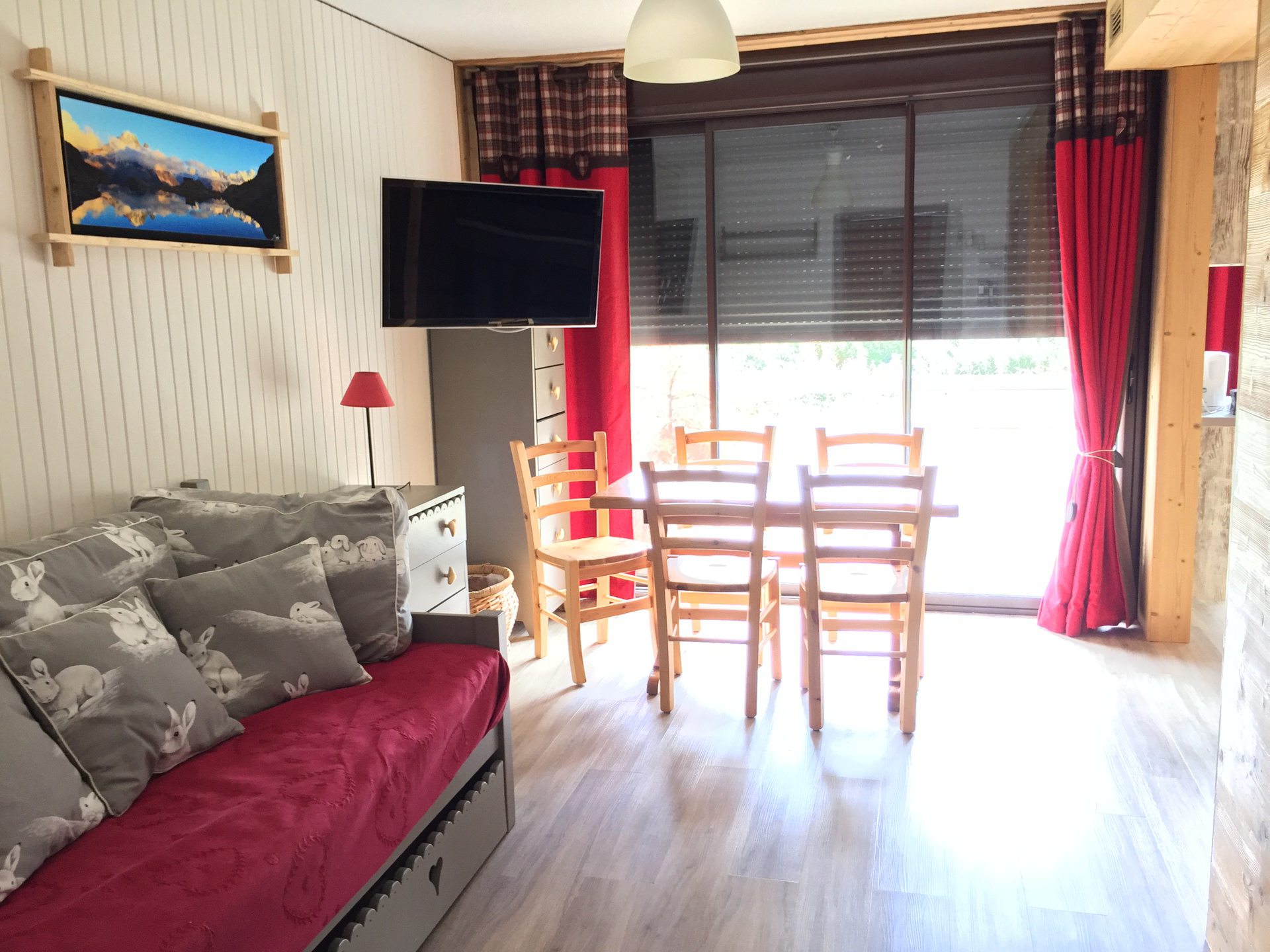 Agréable studio entièrement rénové style montagne au 1er étage avec un balcon.