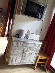 CUISINE : Plaque 2 feux, hotte aspirante, lave-vaisselle, four traditionnel, Réfrigérateur avec partie congélateur, cafetière électrique, bouilloire, grille-pain, micro-ondes...