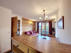 Très bel appartement de standing pour 4 personnes de 31m², tout confort, bien situé, à 50m du jardin des neiges de l'ESF, à 500m des pistes et à 150m des commerces dans une résidence de prestige avec piscine (n°53 sur le plan de la station).